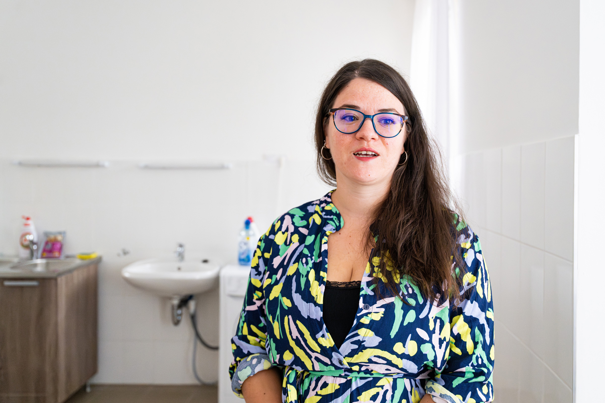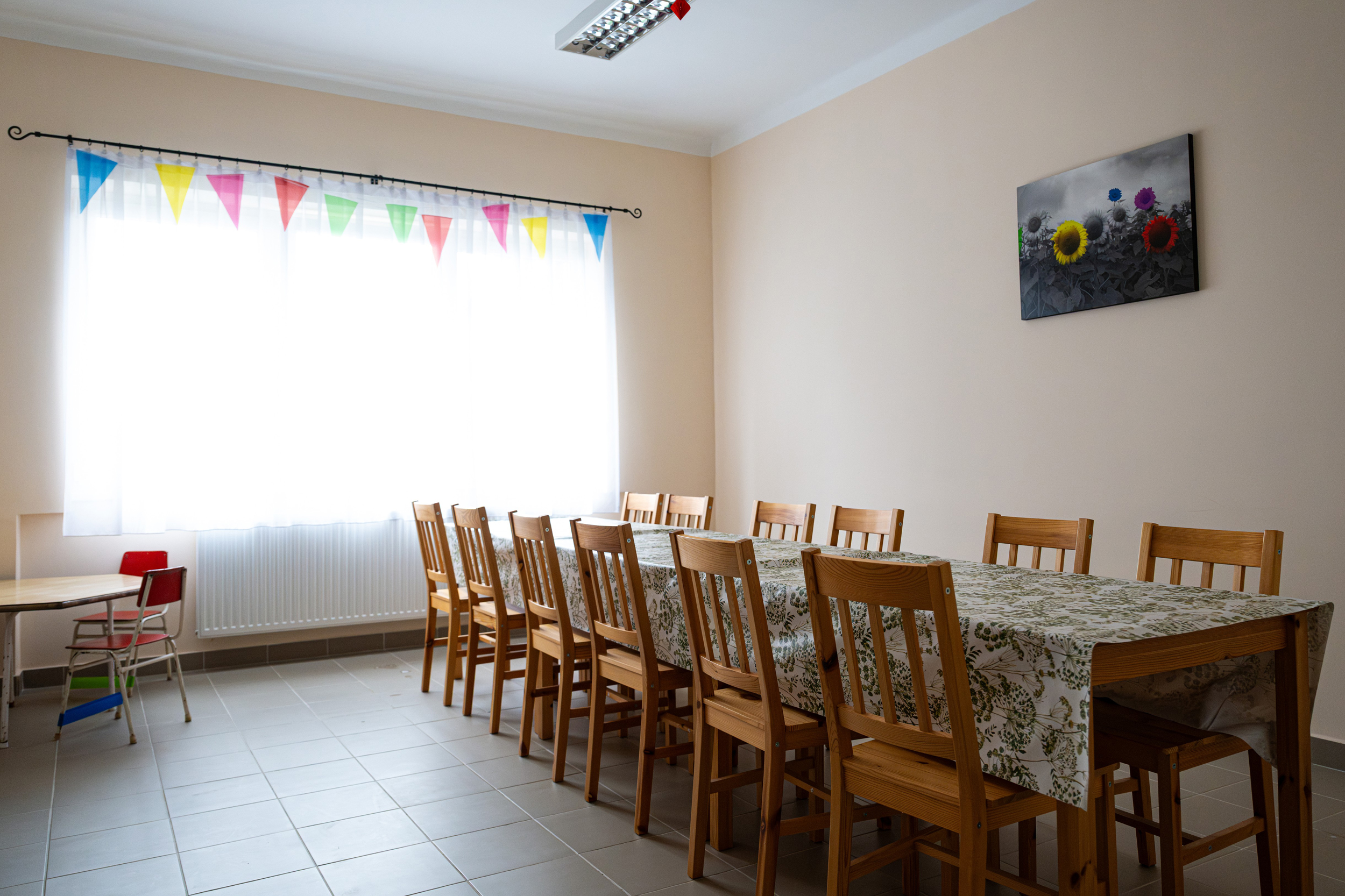 Viktória érkezésünk után körbe is vezet minket a zegzugos, öt éve felújított, de érkezésükig nagyrészt kihasználatlan épületben. A váróban olvasósarok fogadja az érkezőket, de más izgalmas mozzanatok is akadnak: például itt maradt még a fotókeret a nyílt napról (és az érkezők annyira szeretik, hogy úgy tűnik ott is marad). A szobák egy-egy színről kapták a nevüket, nem véletlenül, hisz a hozzájuk vezető utat azonos színű padlójelölők mutatják. Az ilyesfajta vizuális elemek sokat segíthetnek az autista és ADHD-s személyeknek. A zöld szobában például mindenféle korosztály jól érezheti magát egyszerre, hiszen a gyerekeknek számos babzsák, a felnőtteknek pedig kényelmes kanapé áll rendelkezésükre, sőt, nemrég egy pianínó is érkezett. Mi is itt foglalunk helyet.