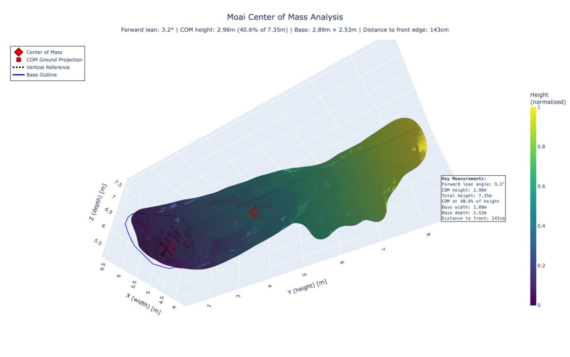 A Journal of Archaeological Science folyóiratban nemrégiben megjelent tanulmányukban Carl Lipo és Terry Hunt antropológusok 962 moai szobrot elemeztek, részletes, nagy felbontású 3D-s modelleket készítve, hogy megvizsgálják a kialakításukat és azt, hogyan szállíthatták őket. Ebből a célból kidolgoztak egy kísérletet, hogy teszteljék, vajon a moaik képesek voltak-e „sétálni”, elméletüket pedig a terepen is tesztelték.