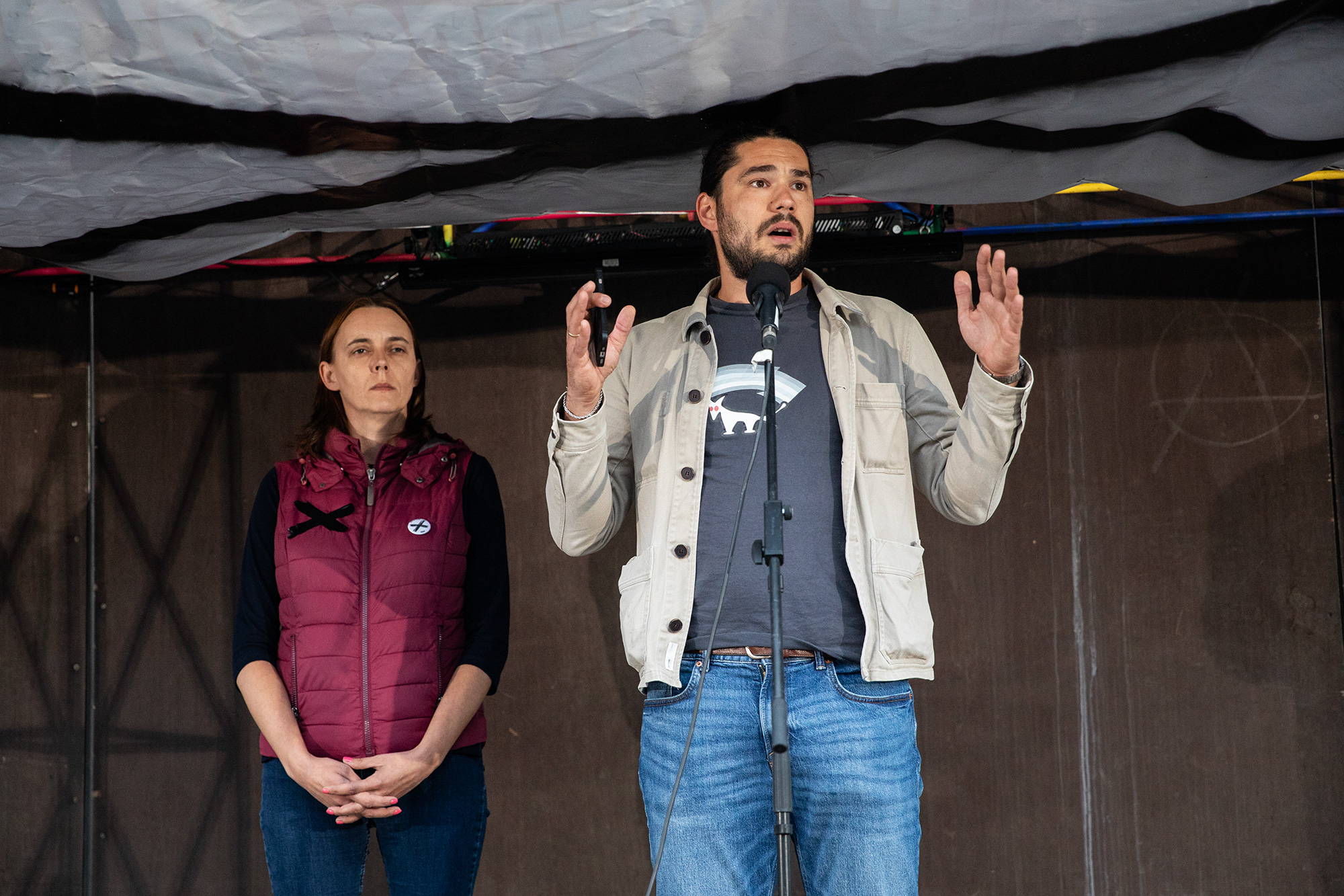 Az eseményen beszédet mondott Nagy Dávid, az MKKP pártigazgatója, és Kazinczy Krisztina, a XXII. kerület önkormányzati képviselője. Nagy azt mondta, rendszerszintű problémákról van szó, ezért nem az a fontos, hogy Semjén Zsolt bűnös-e: