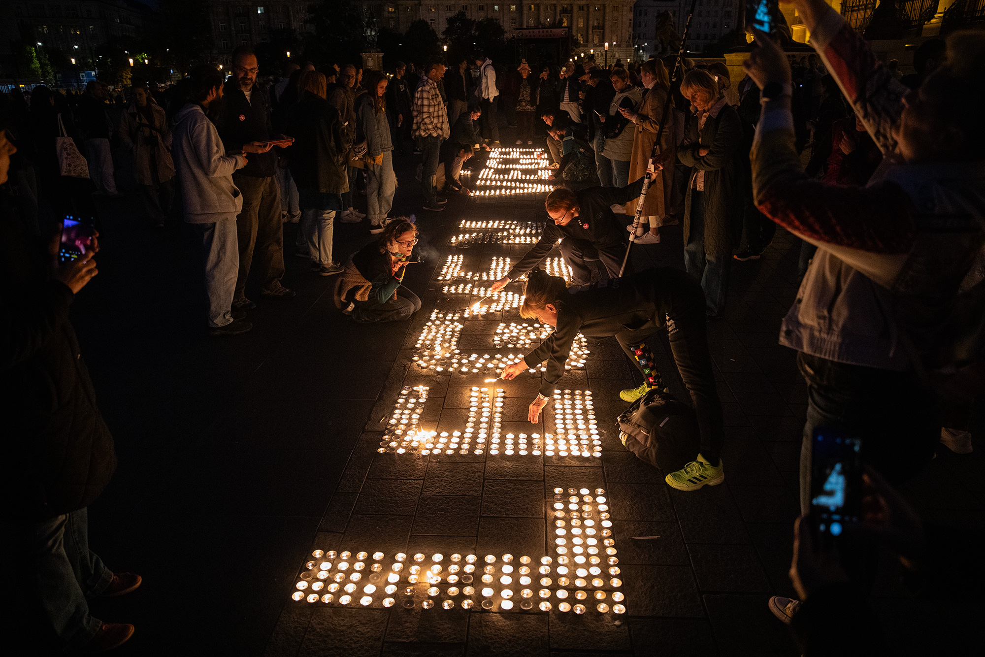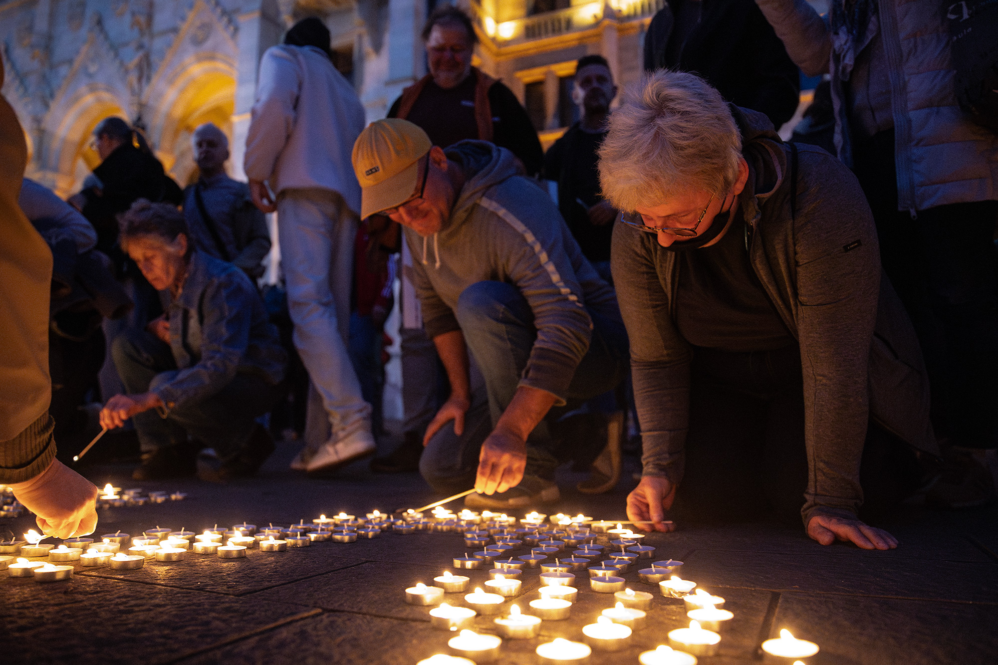 A pár szár fős demonstráció 15 perc néma csenddel, majd gyertyagyújtással zárult.