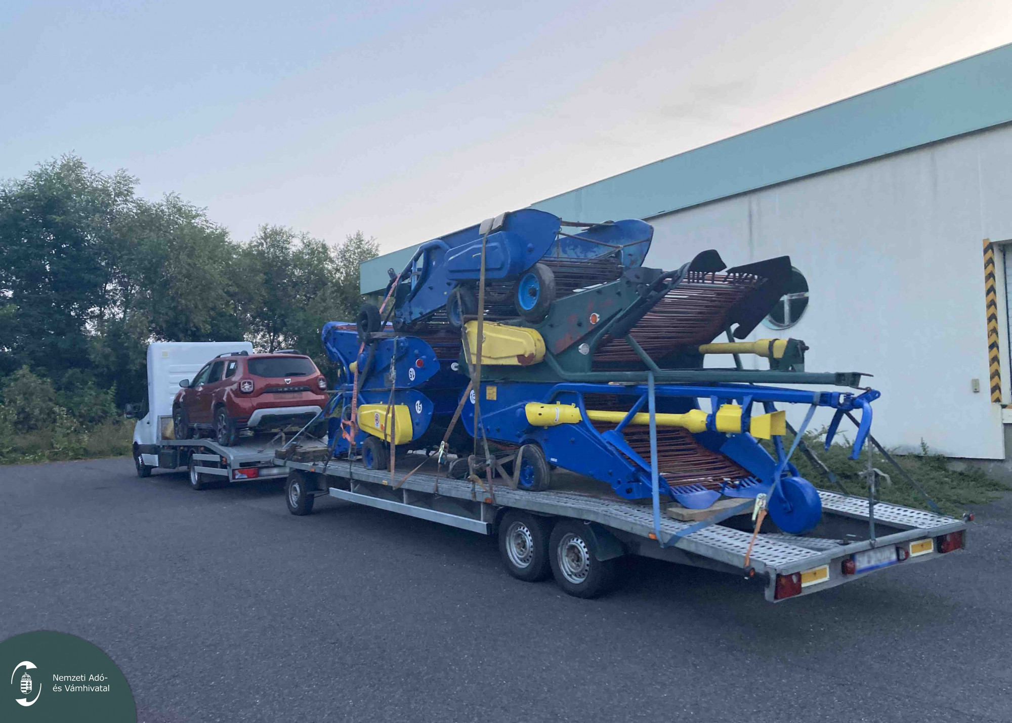 Megdöbbentő karavánba futottak bele a NAV Bevetési Igazgatóságának pénzügyőrei Fehérgyarmaton: a román járműszerelvény egy trélert húzott maga után, rajta egy autóval, mögötte pedig egy hatalmas mezőgazdasági géppel.