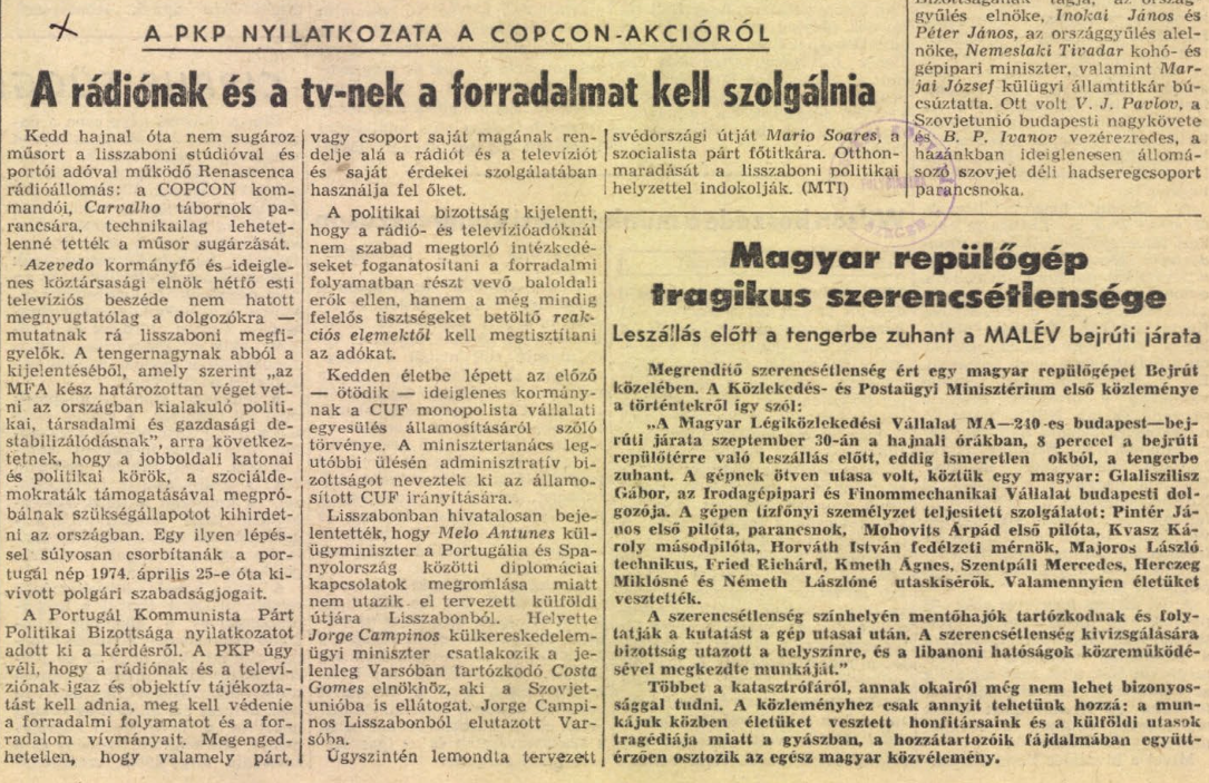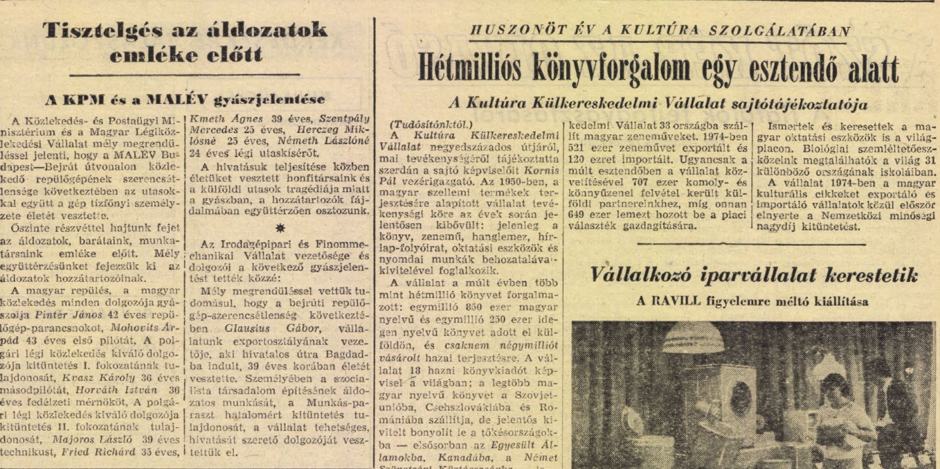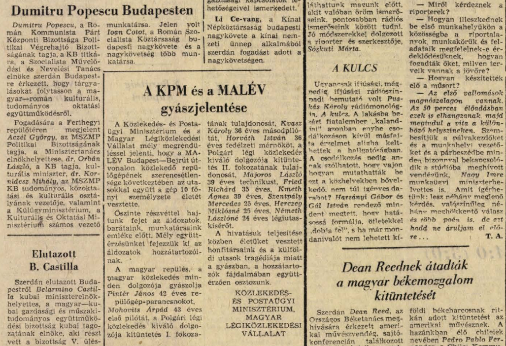 Ehhez képest meglepő volt, amit az MSZMP központi lapja, a Népszabadság csinált. A hírt címoldalon, vastag betűkkel szedve hozták, igaz, csak a lap alján. Ők voltak az egyetlenek, akik hozzáírtak pár saját sort a Közlekedés- és Postaügyi Minisztérium közleményéhez: „Többet a katasztrófáról, annak okairól még nem lehet bizonyossággal tudni. A közleményhez csak annyit tehetünk hozzá: a munkájuk közben életüket vesztett honfitársaink és a külföldi utasok tragédiája miatt a gyászban, a hozzátartozók fájdalmában együttérzően osztozik az egész magyar közvélemény.”