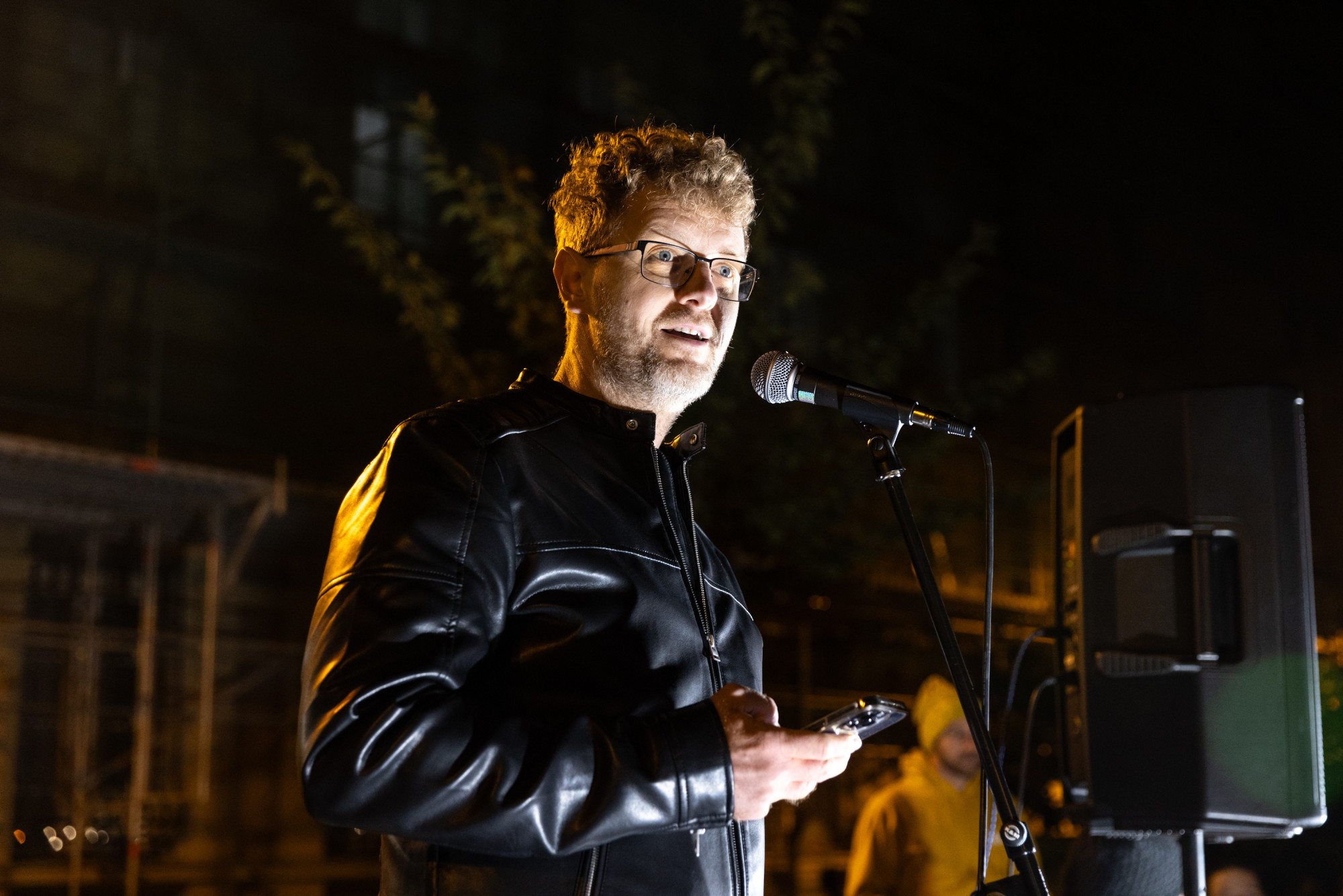 „Lehet, hogy a Pázmány katolikus, de attól még egyetem, és egyetemként biztosítania kell a kutatás és az oktatás szabadságát” – mondta Gömbicz, és a „Szabad ország, szabad egyetem!” skandálás után ezt a gondolatot vitte tovább a többi felszólaló is.