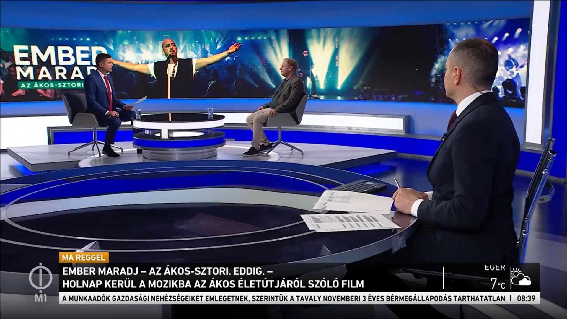 Holnap kerül a mozikba az Ákos életútjáról szóló film - olvasható a felirat az M1-en, miközben az életrajzi mozi rendezőjét kérdezi a köztévé műsorvezetője nagy áhítattal.
