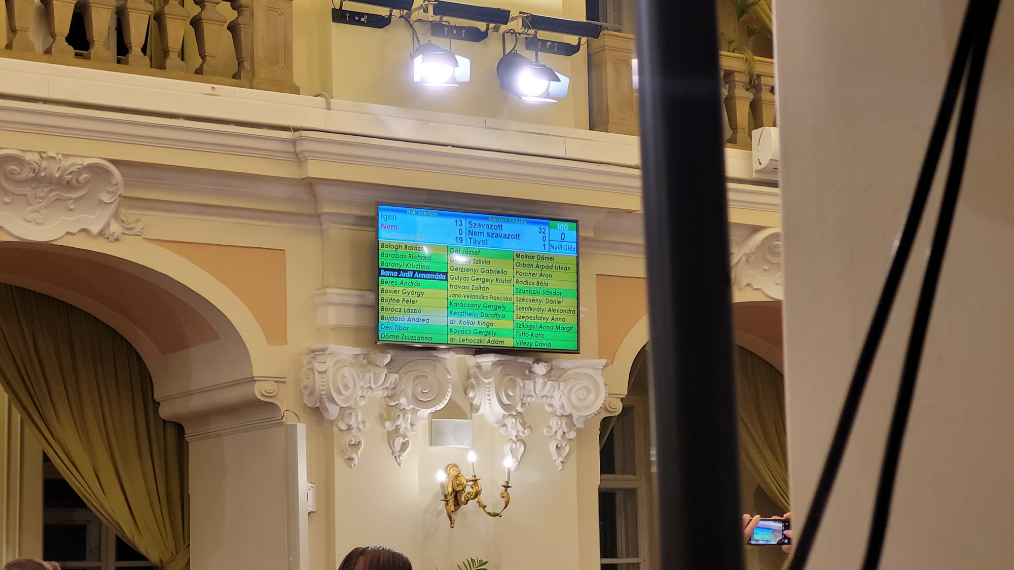 Bujdosó Andrea módosító javaslatát a közgyűlés nem támogatta, Gál József módosítóját támogatta, az MKKP jmódosító javaslatát nem támogatta. Ezek után viszont a javaslat egészéről szóló szavazáson a Fidesz és a Tisza frakciója tartózkodott, így a javaslat nem ment át.