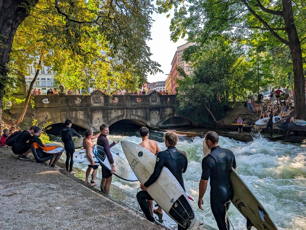 Az Eisbach („jeges patak”) vízszintjét a múlt héten éves medertisztítás miatt csökkentették. Amikor azonban pénteken újra megnyitották a zsilipkapukat, és a víz ismét megindult, a híres Eisbach-hullám nem alakult ki úgy, mint korábban.
