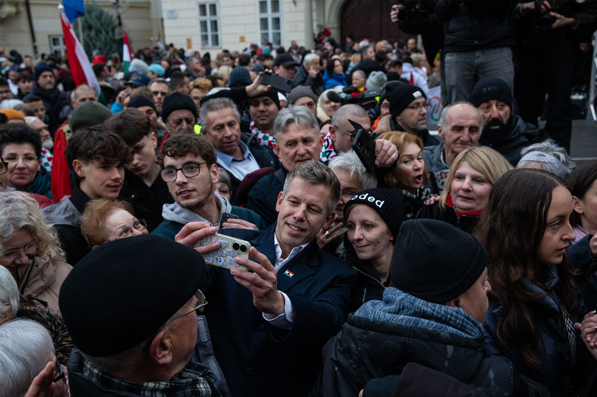 A túloldalon már a harmadik győri tiszás rendzevényre készültek. Hogy voltak már egészen sokan is, arról most Deák Dániel is kirakott képet. A mostanit eleve egy kisebb térre szervezték, az mindenesetre megtelt. Akik voltak mindkettőn, azt mondják, hogy a tavalyin többen lehettek, most hidegebb volt. Annál azért most is jóval többen voltak, mint ami Deák képén látszik. Korai lenne megmondani, hogy mennyire mart bele a tiszás bázisba az adatlopási botrányt, befolyásolja-e a párt mozgósítási képességét. Akik kint voltak, azok közül sokan azt mondták, hogy csak dacosabbá tette őket az ügy. Akik esetleg az adatlopás, vagy a téren a tüntetés előtt látványosan felszerelt kamerák, esetleg kiábrándultság miatt maradtak távol, azokat ott nem tudtuk megkérdezni.