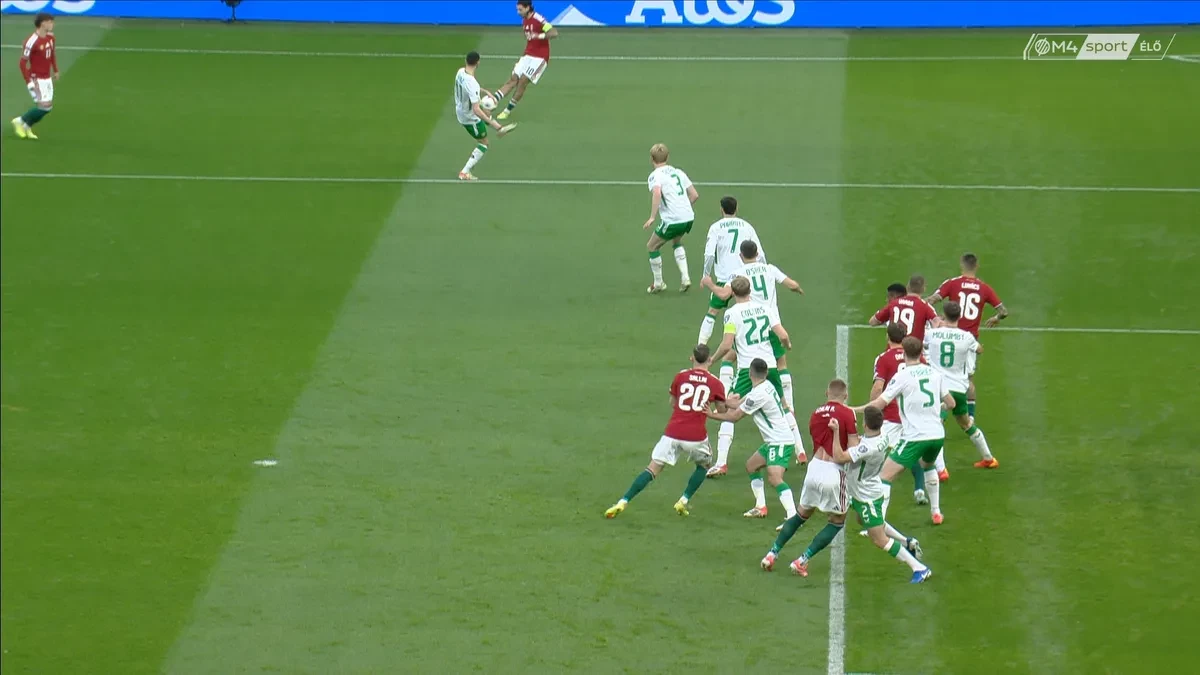 Ugyancsak videóbírózás után ítéltek tizenegyest Írországnak, Szalai Attila rúgta meg Ogbene lábát teljesen feleslegesen. Parrott értékesítette a büntetőt, 1-1 volt a 14. percben.