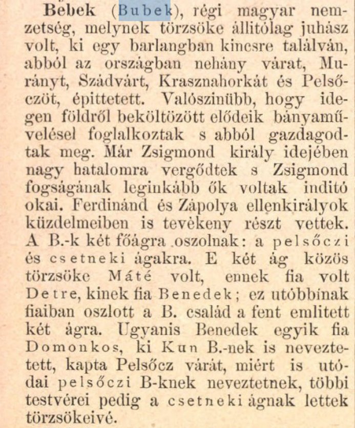 Régebbi lexikonok között pedig ezt adta ki a Bubekre: