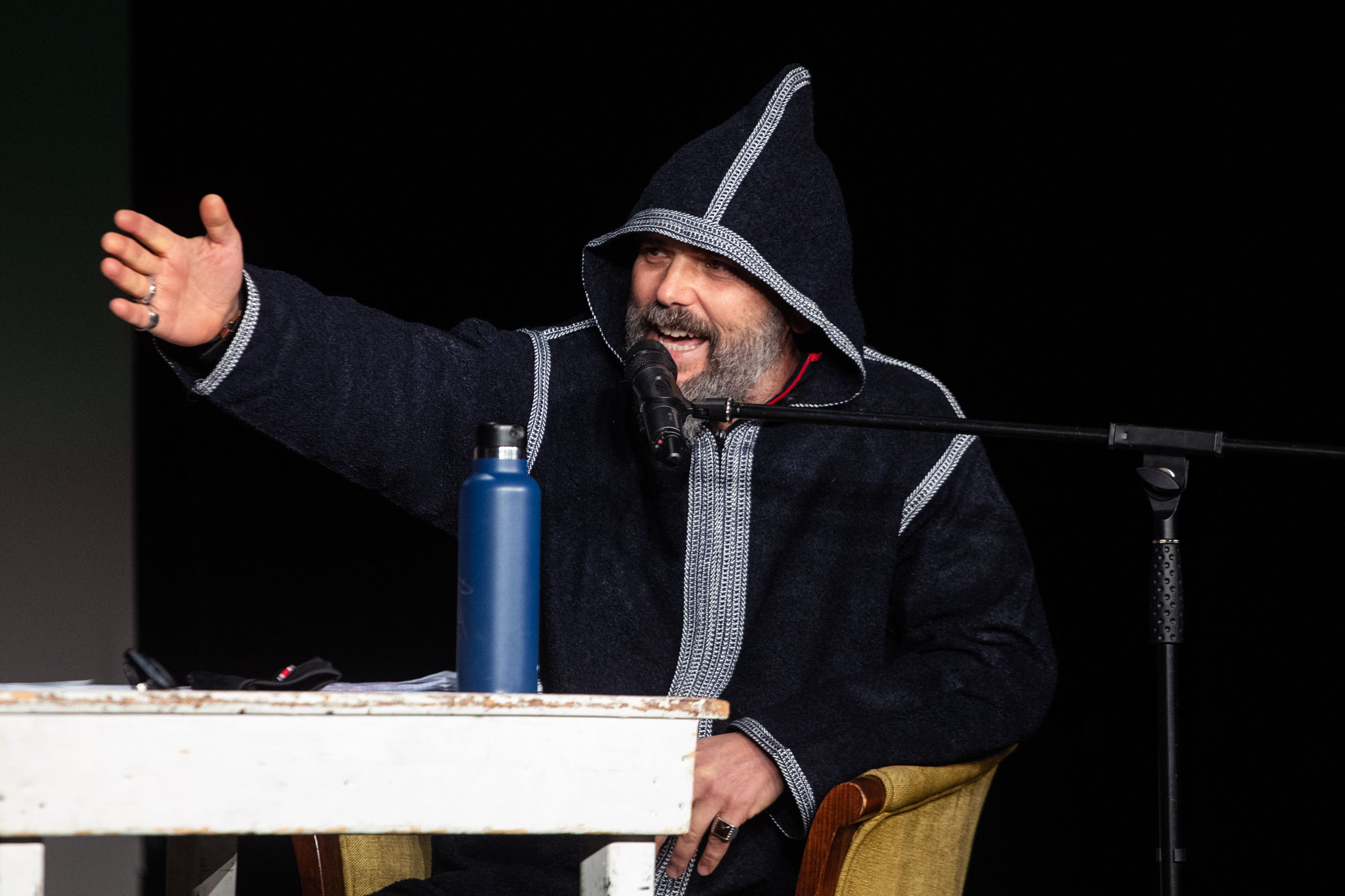És még van itt egy-két képünk, például a Marokkóban beszerzett Gyűrűk Ura-jelemezében mutogató Winklerről: