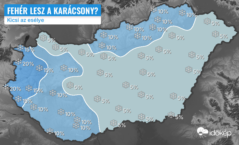 És az Időkép? Ugyanez! Szombat délután írták: „A jelenlegi számítások alapján az már viszonylag biztosnak tűnik, hogy csapadék érkezik, és az ország nagy részét érintheti. Ennek esélye északkeletről délnyugat felé haladva fokozatosan növekszik. A halmazállapot azonban továbbra is kérdéses, mivel nagyban függ attól, milyen mértékű lehűlés következik be a magasabb légrétegekben. Jelen állás szerint északon és a Dunántúlon van nagyobb esély arra, hogy szenteste a csapadék havas esőbe, illetve havazásba váltson.”