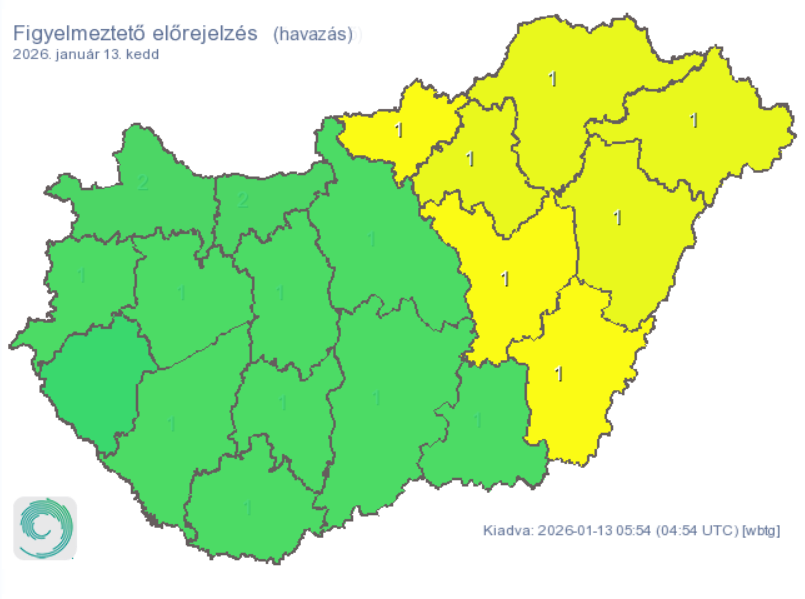 Az előrejelzés szerint az az ország elég nagy részét érinti majd az ónos eső, erre is riaszás lehet majd érvényben.