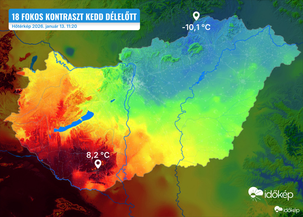 Az Időkép beszámolója szerint volt olyan pontja a napnak, amikor Baranyában, a magyar Mediterránumban 8,2 Celsius-fokot mértek, míg a szlovák határ közelében, az Aggteleki Nemzeti Parkban mínusz 10,1 fokot.