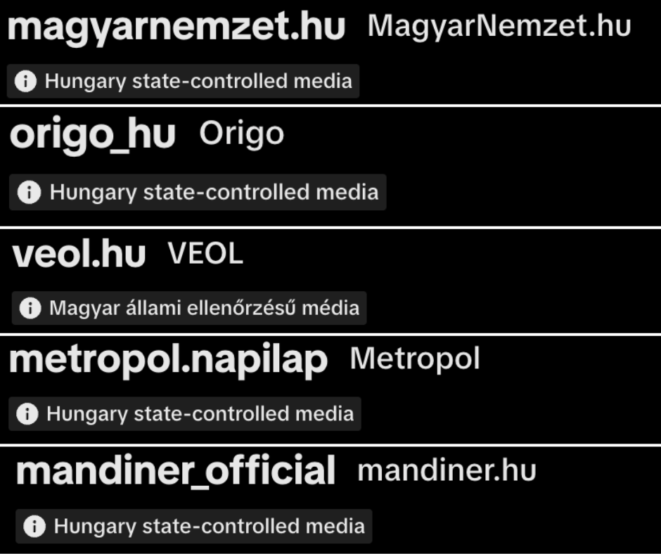 Gyakorlatilag a teljes kormánypárti médiabirodalom megkapta a TikTok új címkéjét, ami arra figyelmezteti a felhasználókat, hogy a platform szerint az adott oldal kormányzati ellenőrzés alatt áll – szúrta ki a hvg.hu.