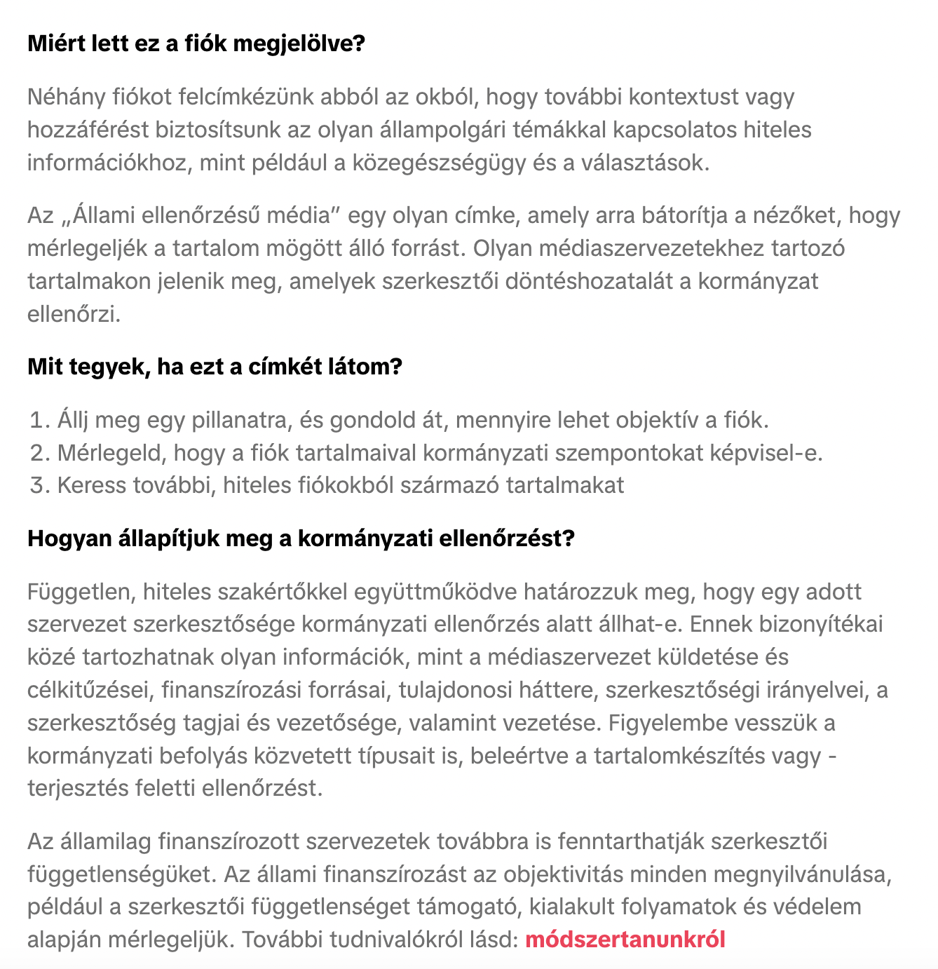 A kínai ByteDance tulajdonában álló platform azt írja, „független, hiteles szakértőkkel együttműködve” döntöttek arról, hogy egy adott szerkesztőség kormányzati ellenőrzés alatt állhat-e, vagy sem, módszertanukról ide kattintva lehet többet olvasni.
