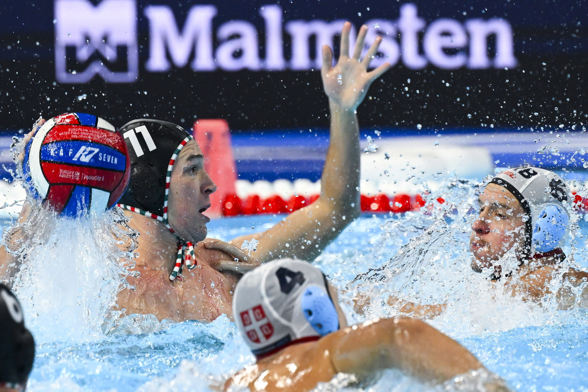 Az első negyedben a mieink szerezték meg a vezetést Vigvári Vendel góljával, de a szerbek 2-1-re fordítottak, a második gólt kettős emberelőnyből lőtték a negyed közepén. Nagy Ákos, szintén előnyből, egyenlített, majd újra a szerbek kaptak fórt, de támadóhibát követtek el. A következő emberelőnyt viszont, kevesebb, mint másfél perccel a szünet előtt, belőtték, Nikola Lukics második góljával 3-2-re vezettek. Az utolsó másodpercekben Vogel Soma bemutatta az első védését, de támadásra és egyenlítésre már nem maradt idő.