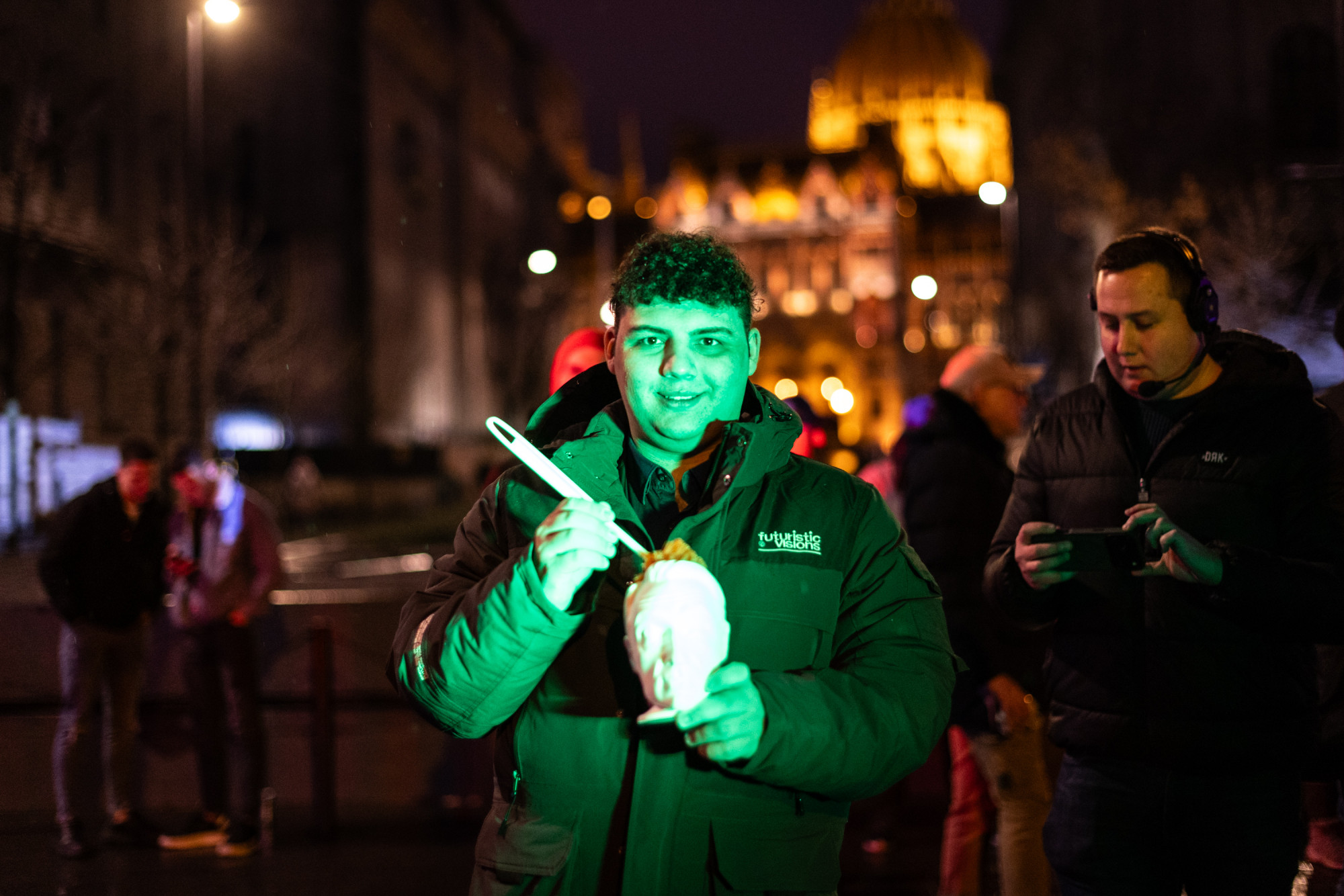 A szemerkélő eső ellenére néhány százan összegyűltek az Alkotmány utcában, a Trianon-emlékmű mögött. A felszólalásokat kifejezetten laza, utcafesztivál-szerű hangulat előzte meg: a hangfalakból LL Junior, Majka, Oláh Ibolya és a Parno Graszt dalai szóltak.