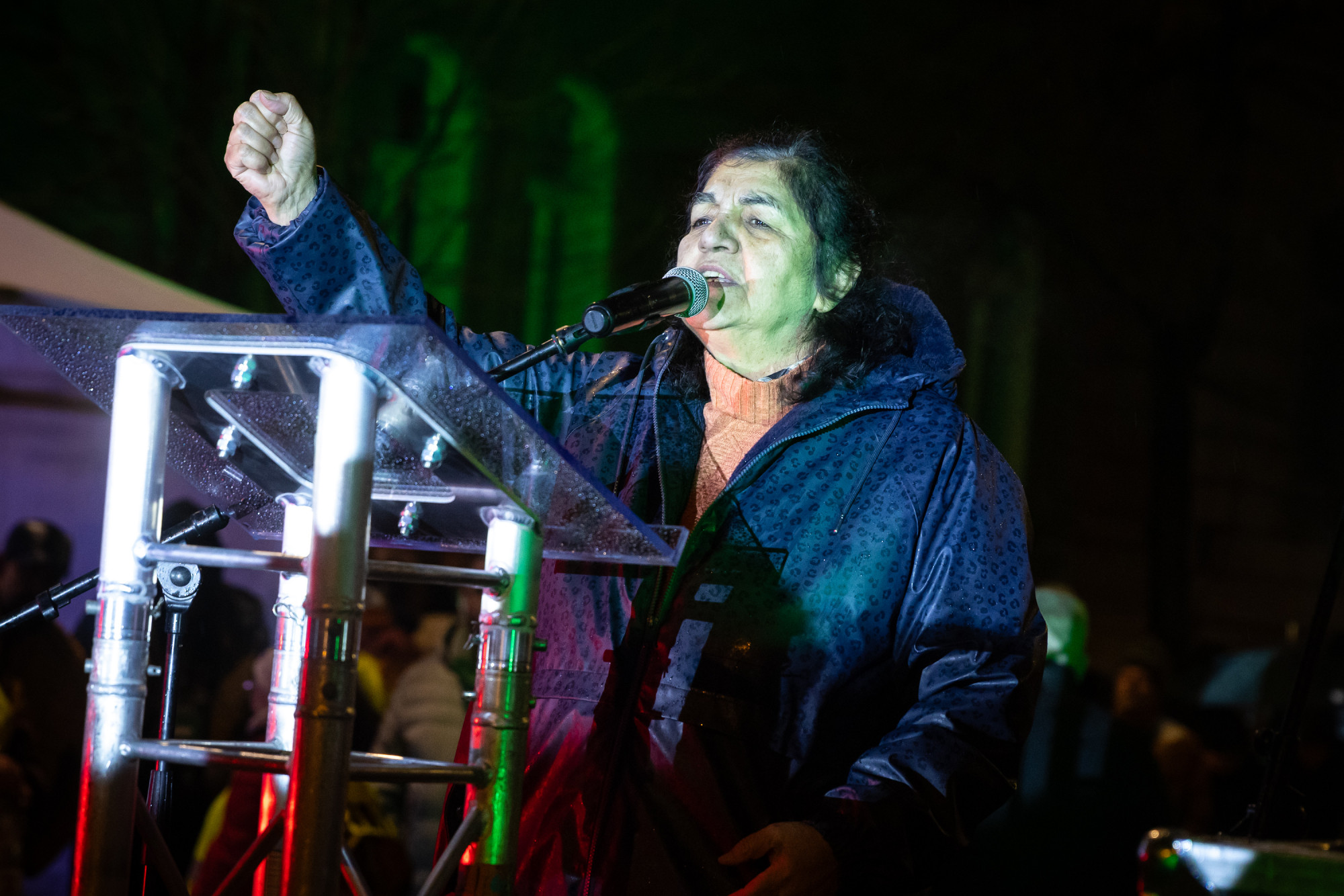 A Parlament közelségére utalva arra buzdította a tömeget, skandálják, hogy Lázár János mondjon le, majd a miniszterelnök lemondását is követelte. Azt mondta: „a hátralévő időt még valahogy kibírjuk”, és hozzátette, a haza érdekében sok mindent el lehet viselni.