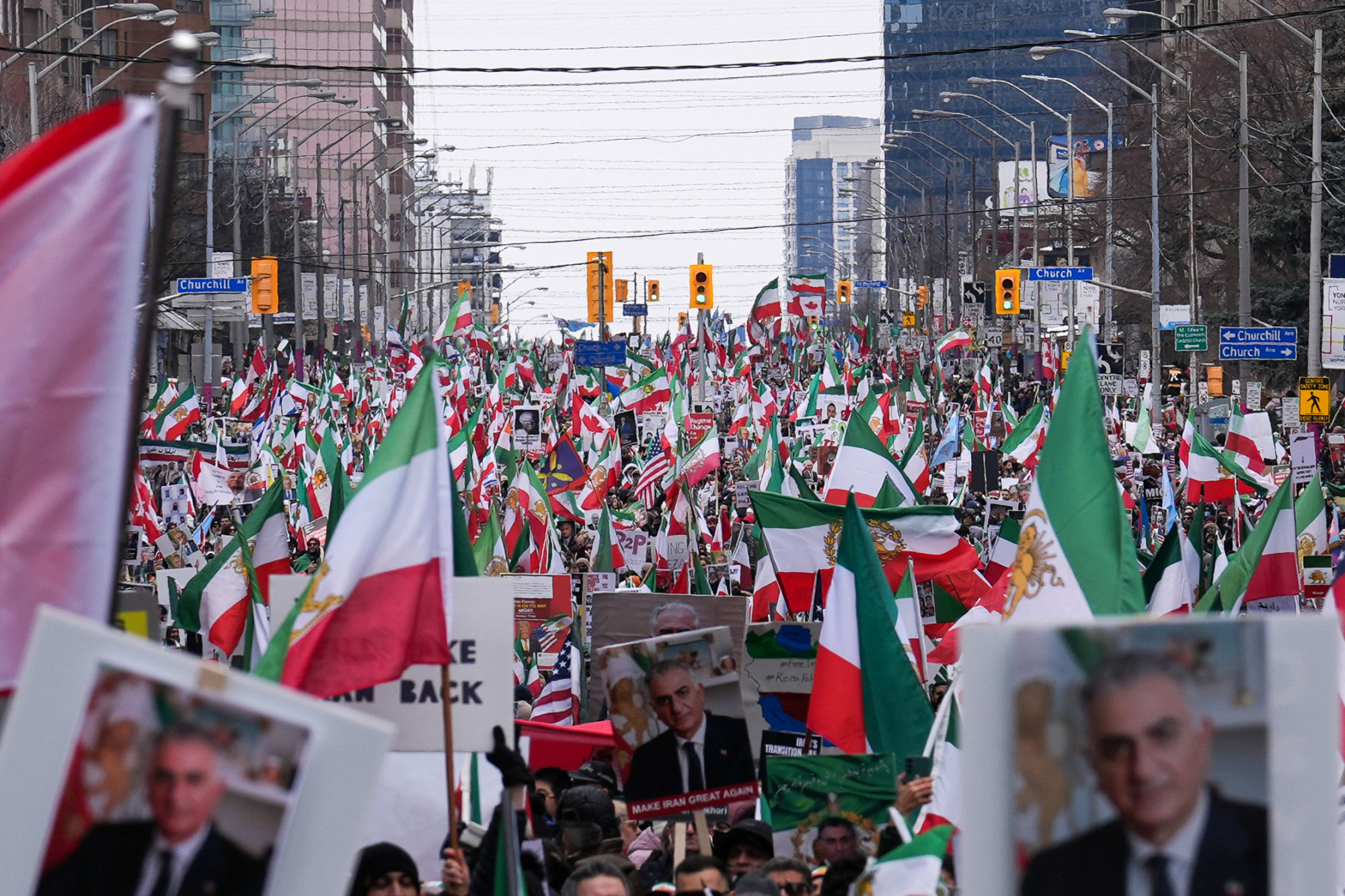 Torontóban mintegy 350 ezren vonultak utcára. A BBC perzsa részlegének több résztvevő azt mondta, azért demonstrálnak, hogy hangot adjanak az Iránban élő családtagjaik és barátaik követeléseinek. Los Angelesben Pahlavi lánya, Noor Pahlavi szólalt fel, és azt mondta: az irániak „még soha nem álltak ilyen közel ahhoz, hogy megszabadítsák magukat ettől az iszlám rezsimtől”. Egyben felszólította Donald Trump amerikai elnököt, hogy szakítsa meg a Teheránnal folytatott nukleáris tárgyalásokat, amelyeket „gyilkosokkal folytatott egyeztetésnek” nevezett.