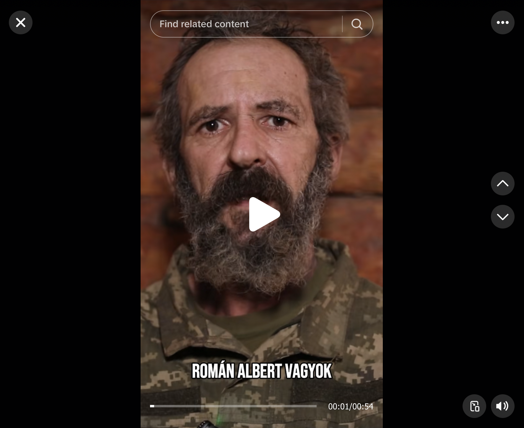 Az egyik, orosz fogságban lévő kárpátaljai férfiról készült videó például a Facebookon már tavaly karácsonykor megjelent, míg a TikTokra csak január végén került fel, ott azonban több mint 450 ezres megtekintést ért el. A meglehetősen hanyagul feliratozott felvételen egy Horváth Emil nevű, 26 éves férfi beszél, aki egy ponton - nehezen értelmezhető kontextusban - Orbán Viktor nevét is megemlíti.