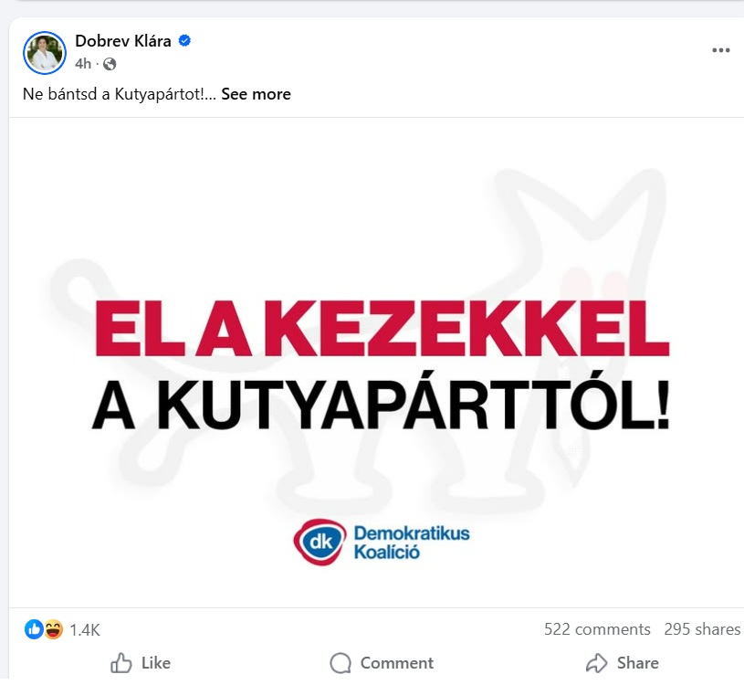 „Jajj ne, még ez is..” – reagált kommentben Kovács Gergely arra, hogy Dobrev Klára és a DK Facebook-posztban vették védelmükbe a Magyar Kétfarkú Kutya Pártot. Az MKKP nagy nehezen összehozott listaállítása ugyanis veszélybe került, miután közel 40 választókerületben nyújtottak be fellebbezéseket a jelöltjeik nyilvántartásba vétele ellen. A párt szervezett akciót sejt a lépés mögött, szerintük a fellebbezéseknek nincs valós jogi alapjuk, és várakozásaik szerint jelöltjeik listája végül jogerősen nyilvántartásba kerül.
